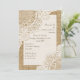 Elegante rustikale weiße Spitzen auf dem Shabby Chic Hochzeit Probe Dinner Einladung mit weißer Spitze auf Leinen natürlichen Einbruch oder hessisch, die zwei Ecken eines weißen Rechtecks mit beige Einbruch Rand. Text in braun. Achten Sie darauf, dass Spitzen und Burlap alle "bedruckt" sind und nicht echtes Gewebe. Dieses elegante, elegante und romantische Shabby Chic mit rustikalen Wesensmerkmalen ist Teil eines Hochzeitszimmers und eignet sich hervorragend für einen Country-Chic oder Western Frühjahr, Sommer- oder Herbst/Herbst Hochzeitsfeier mit einer neutralen Farbpalette.