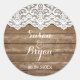 Rustikale weiße Spitzen- und Holzwolzklemme Runder Aufkleber