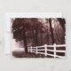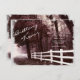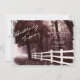 Weiße Zaun-Waldweg-Hochzeits-Einladungen mit einer beunruhigten Naturszene der Bäume und Blätter mit einem weißen Zaun. Diese friedlichen Hochzeitseinladungen haben eine lila Farbe zu ihnen. Der gleiche Vintage beunruhigte Entwurf ist auf der Rückseite der Einladung. Diese würden für Fall- und Herbsthochzeiten groß sein. Fügen Sie einfach Ihre eigene Hochzeitseinladung hinzu, die der Schablone abfaßt.