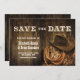 Benachrichtigen Sie Ihre Freunde und Lieben über Ihre bevorstehende Hochzeit mit dieser rustikalen Holz Western Hochzeit rett-the-date-Karte.