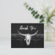 Dieses Dankeschön Postcard zeigt einen rustikalen Western Schwarz-Weiß Bull Kuh Schädel Rodeo Cowboy Hochzeitsthema. Bauernstil, alter Wild West Vintage antike, coole, trendige, moderne, stilvolle Bauernhof Tier personalisierte Design mit schönen Typografie. Bildrecht Marg Seregelyi Fotografie.