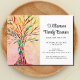 Laden Sie Ihre Familie mit dieser einzigartigen Postkarte auf ihre Wiedersehen ein. Es ist mit einem Mosaikbaum in lebhaften Farben auf rustikalem Hintergrund dekoriert. Einfach anpassbar. Original Mosaik © Michele Davies.