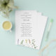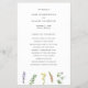 Boho Hochzeitsprogramm Flyer mit Aquarell lackierte Wildblumen in einem einfachen Layout. Diese botanisch-blumigen Hochzeitsprogramme sind ideal für eine rustikale Hochzeit im Frühling oder Sommer und werden auf Papierbögen gedruckt, um eine preisgünstige Option zu erhalten.