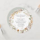 ROUND FORMAT EINLADUNG. Rustikal, aber ruhig elegant, gedämpft staubiger Fall, Herbstblumen mit winzigen Wildblumen, Farne und duftendes Blattgrün auf einem weichen, cremefarbenen Hintergrund. Die Rückseite hat den gleichen Blumenkranz über einem warmen, mutierten Salbeihintergrund (der in jede gewünschte Farbe geändert werden kann). Ein komplettes Set von Produkten steht in der Sammlung zum Kauf zur Verfügung. MSP0109