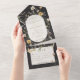 AUCH MIT EINEM QR CODE ZUM SCAN VERFÜGBAR. Dieses Design zeichnet sich durch eine weiche Wildblume rund um ein cremefarbenes Oval auf einem kohlebasierten Hintergrund aus. Personalisierte All-In-One-Einladungen sind eine einzigartige Kombination aus einer schön gedruckten, maßgeschneiderten Einladung und einer leicht zu abreißenden perforierten UAWG-Postkarte. Und sie sind so einfach zu bedienen! Man falte einfach, dann Siegel die Rückklappe mit den drei beiliegenden Klarkleben, und Post. Und wenn Ihre Gäste Ihre persönliche Einladung erhalten, reißen sie einfach die perforierte RSVP Karte ab und lassen sie in der Mail an Sie zurück!