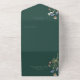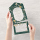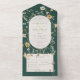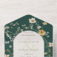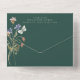AUCH MIT QR CODE, MIT ZWEI ABENDESOPTIONEN ODER OHNE ABENDESOPTIONEN. Dieses Design zeichnet sich durch eine weiche Wildblume rund um ein Cremeoval auf einem smaragdgrünen Hintergrund aus. Personalisierte All-In-One-Einladungen sind eine einzigartige Kombination aus einer schön gedruckten, maßgeschneiderten Einladung und einer leicht zu abreißenden perforierten UAWG-Postkarte. Und sie sind so einfach zu bedienen! Man falte einfach, dann Siegel die Rückklappe mit den drei beiliegenden Klarkleben, und Post. Und wenn Ihre Gäste Ihre persönliche Einladung erhalten, reißen sie einfach die perforierte RSVP Karte ab und lassen sie in der Mail an Sie zurück!