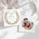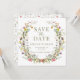 Mit diesem Save the Date Foto laden wir Sie ein, Ihre rustikale Hochzeitsankündigung mit Schick und Raffinesse zu verbinden. Das Design hebt ein elegantes botanisches Thema hervor, das mit zarten bunten Blüten der Wildblume geschmückt ist.