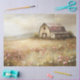 Dieses bezaubernde Gemälde zeigt eine rustikale, weiße Scheune, eingebettet in ein Feld lebendiger Wildblumen, das eine friedliche Landschaft hervorruft. Die sanften Pinselstriche und warmen Farbtöne schaffen eine nostalgische Landschaft im Bauernstil, die sich perfekt für die ländliche und rustikale Dekoration eignet.