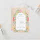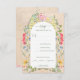 Feine Wildblumen in hellen und hellen Aquarellen sind rund um den zentralen Bogen der Einladung angeordnet. Kalligraphie und moderner Sans Serif Schriftart verbinden sich in einem modernen, schlichten Look, in Harmonie mit den süßen Wildblumen. Grünfarbene Schriftart verstärken das wilde und natürliche Gefühl. Auf antikem Papierboden platziert. Passen Sie die Schriftart an, wenn Sie möchten, aber um die Swashes auf der Kalligrafie zu behalten, behielt Sie die rechteckigen Symbole. Die Farbe der Tinte für die Schrift kann im Designwerkzeug geändert werden.