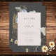 Ankündigen Sie Ihre Hochzeit mit einer Touch rustikaler Eleganz. Unsere bezaubernde Hochzeitseinladung besticht durch eine lebhafte Anordnung von Wildblumen und Farnen, sorgfältig handgezeichnet und an gepresste botanische Schätze erinnernd. Reiche Farben wie Bräune, Gelb, Creme, Blau und Salbei Grün heben sich schön von einem weichen, schwarzen Hintergrund aus Holzkohle ab. Ihre Hochzeitsdetails werden in einer knusprigen, cremefarbenen Textbox präsentiert und sorgen für Klarheit und Eleganz. Dieses faszinierende Design vereint das Wesen einer Wildblume-Wiese und bietet eine einzigartige und unvergessliche Art, Ihre Liebe zu feiern. Erstellt von der einfachen Farmhouse Press.