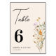 Rustikale Wildblumen Cream Script Boho Wedding Tischnummer