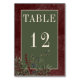 Rustikale Winterbrände & Pine Burgund Hochzeit Tischnummer
