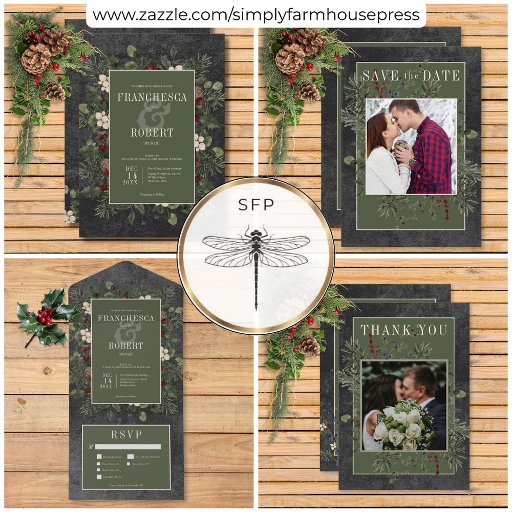 Rustic Winter Berries & Pine Black WeddingDesignt von Kathe Santillo