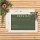 Eine neue Karte, mit der Sie Ihre Hochzeit im Winter bewundern können, wo zeitlose Eleganz auf die Schönheit der Saison trifft. Der cremefarbene Hintergrund, kunstvoll bedrängt mit sanften weißen Akzenten, Set einen fesselnden Ton für Ihren besonderen Tag. Im dunkelgrünen Textbereich werden Ihre Hochzeitsdetails glänzen, umgeben von einem zarten, hellen Salbei, der eine Touch der Verfeinerung hinzufügt. Genießen Sie den Wintergeist mit einer atemberaubenden Touch üppiger Vegetation, die mit satten roten Beeren, Misteloe mit feinen, weißen Beeren und dem zeitlosen Reiz grüner Kiefern verziert ist. Dieses herrlich inspirierte Winterdesign erweckt den Sinn der Saison und lädt Ihre Gäste dazu ein, Ihre Liebe in einem Ambiente zu feiern, das von natürlicher Anmut und festlichem Charme geprägt ist. Mit diesem Design werden Sie sicher sein, die Bühne für ein Fest voller Liebe und Freude Set. Genießen Sie die Magie des Winters und ließ Ihre Hochzeit ein Spiegelbild der Schönheit, die diese Saison bringt. Es ist Teil der Hochzeitssuite Rustic Winter Berries & Pine Cream. Erstellt von der einfachen Farmhouse Press.