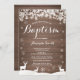 Rustikale Winter Hirsch Taufe Einladung. Weiße Schneeflocke. Junge oder Mädchen Taufe. Erstkommunion. Feiern. Kindesentführung. Rustikaler Holzhintergrund. Land Vintager Retrostall. Für weitere Anpassungen klicken Sie bitte auf die Schaltfläche "Anpassen" und verwenden Sie unser Designwerkzeug, um diese Vorlage zu ändern.