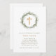 Diese einfachen und eleganten Gender-neutralen Confirmation-Einladungen sind mit einem botanischen Kranz von Aquarell im Winter-Grün und einem rustikalen Holz-Look kreuz auf einem weißen Hintergrund.