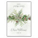 Diese elegante Platzkarte besticht durch ein festliches Wintergrün-Design und eignet sich hervorragend, um Ihren Urlaub oder Ihre Saisonveranstaltung mit einer Touch von Naturschönheiten zu bereichern. Die Aquarellbilder mit üppigen Tannenzweigen, zarten Kiefernnadeln, rustikalen Nadelkronen und lebendigen roten Heiligbeeren schaffen eine warme und einladende Atmosphäre. Ergänzt wird das Design durch eine ausgeklügelte Skripttypografie für Gastnamen und Veranstaltungsdetails, das ganze Set vor einem weichen, subtil strukturierten Hintergrund mit Hauch von goldenem Funkeln.