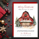 Die rustikale Weihnachtskarte der Aquarellmauer mit einer festlich dekorierten Scheune, die mit Schnee bestreut ist, und schönen Kiefernbäumen wären perfekt, um sie an Freunde und Familie zu schicken. Die Nachricht ist anpassbar und die Vorlagen sind sehr einfach zu bedienen. In Sekunden können Sie Ihre einzigartigen Weihnachtskarten sehen.