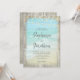 In diesem rustikalen Hochzeitsdesign am Strand stürzen die Ozeanwellen an den Strand. Obere Wandleuchten, die wichtigen Details sind mit verwittertem Holz gerahmt. Diese Einladungen eignen sich hervorragend für Hochzeiten in Urlaubsort, aber auch für Hochzeiten mit Strand- und Küstenthemen.