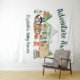 Niedliche rustikale Babydusche-Begrüßungsschild und Foto-Hintergrund mit einer Aquarelldarstellung von Waldtieren mit ihrem Zelt- und Lagerfeuer-Camping in den Bergen und Wäldern, "Adventure Awaits" und dem Namen der künftigen Mutter in einer dunkelgrünen Schrift.