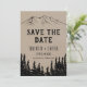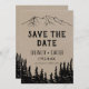 Diese rustikale, waldreiche Save the Date-Karte ist ideal für eine Waldhochzeit. Das naturlich inspirierte Design kennzeichnet die Silhouette eines Kiefernwaldes und Berge auf Imitaten Kraftpapier. Bitte beachten Sie: Dieses Papier ist nicht auf echtes Kraftpapier gedruckt. Es ist eine hochwertige Grafik, die wie Kraftpapier aussieht.