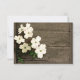 Schöne rustikale, schicke Hochzeitskarte mit einem grafischen Foto eines rustikalen Holzzauns. Hübsche, weiße Hundsholzblüten schmücken die untere links Kartenecke. Weißer Text ist vollständig auf Ihre Hochzeitsbedürfnisse anpassbar. Entsprechende Einladungen sind verfügbar.