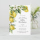 Diese wunderschöne mediterrane Themenfeier zum 60. Geburtstag verströmt rustikalen Charme. Es zeichnet sich durch eine Kaskadenanordnung von frischen Aquarelllemonen in Zitrusgelb und Grün mit weißen Blüten aus. Es ist eine schöne Wahl für Geburtstagsfeiern jeden Alters und hat ein helles und fröhliches Farbschema, das Freude und Freude hervorruft. Personalisieren Sie die Textvorlage mit Ihren Ereignisdetails.