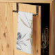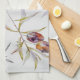 Ein schönes, modernes Küchentuch mit handgemalten Olivenzweigen in Aquarellfarbe mit antiken Goldakzenten