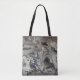 Diese schöne und rustikale Tasche ist mit einem nahen Foto aus Treibholz versehen, das an einem kalifornischen Strand aufgewaschen war. Die wunderschönen Erdfarben braun, schwarz und grau wirbeln sich und spiralförmig um die Tasche herum und schaffen ein einzigartiges abstraktes Muster. Das gleiche Foto aus Treibholz befindet sich auf der Vorderseite und auf der Rückseite dieses Strandes.