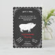 Klassisch leicht zu anpassen rustikale altmodische amerikanische GRILLEN Party mit einem Chalboard / Blackboard Hintergrund mit einem Vintagen Schwein. Verschiedene Vorlagentexte lassen sich einfach auf der Vorder- und Rückseite anpassen, um ein personalisiertes Aussehen zu erhalten.