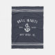 Bleibe gemütlich auf deinem Boot mit dieser coolen Vliesdecke. Das nautische Design in reicher, tiefblauer und weißer Marinestruktur zeichnet sich durch den Namen Ihres Bootes, die Schiffsregistrierung und das Jahr aus, das in rustikalen weißen Schriftzeichen mit einer Seil- und Ankerillustrierung etabliert wurde. Die Rosenkranzdetails oben und unten runden das Küstendesign ab.