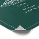 Hochzeitsempfang mit rustikaler Scheunenillustrierung über smaragdgrünen Hintergrund.