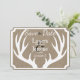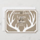Diese speichern die Terminkarten sind absolut perfekt für eine rustikale Hochzeit im Bauernhof! Sie sind mit knusprigen weißen Hirschgeweih-Geweih-Geweih-Geweih-Geweihten ausgestattet, die Ihre Braut- und Bräutigungstexte und Ihren Hochzeitstag abstecken. Der Hintergrund ist ein Imitat-Ticketprint mit weißem Rahmen. Die rückseitigen Staaten "Formal Invitation to follow".