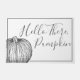 Holen Sie sich einen Vintagen Herbst suchen Sie nach Ihrem Eingang! Dieses rustikale Bauernhaus-Stil grau-weiß Türmchen hat die Worte "Hello There, Pumpkin" in dünne, weiche Schrift. Es ist eine detaillierte Kürbisillustrierung, die dem Herbstthema einen Vintagen Look verleiht.