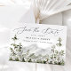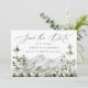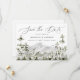 Rustikal speichern Sie die Daten mit "Save the Date" in eleganter Kalligraphie-Skript mit einer Landschaft von Aquarell immergrünen Bäumen und Bergen. Personalisieren Sie die Vorderseite des Waldes Berg speichern Sie die Daten mit Ihren Namen, Hochzeitstag und Hochzeitsort. Das naturgetreue Save the Date kehrt zurück, um Ihre Hochzeitswebsite und alle wichtigen Details zur Hochzeit anzuzeigen.