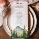 Rustikaler Bergwald Evergreen Tree Wedding Menükarte