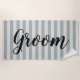 Einfach stylisches, blau und Elfenbeingestreiftes Strandtuch personalisiert mit großen Groom Schriftzeichen oder passen es mit Ihrem Namen oder anderen Texten an. Verwenden Sie die Designtools, um die Schriftartes und Farben des Textes zu ändern oder um Ihre eigenen Fotos zu erstellen, um ein personalisiertes Strandtuch für Ihre Hochzeitsreise oder ein einzigartiges Hochzeitsgeschenk zu erstellen.