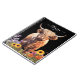 Niedliche mit Augen Highland Kuh stehend in einem Blumengarten mit schwarzem Hintergrund.
