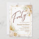 Rustikale Boho 40. Geburtstagsfeier Einladung mit floralen Getrennten & Goldenen Akzenten laden Sie zu einem gemütlichen und stilvollen Fest mit dieser rustikalen boho 40. Geburtstagseinladung ein. Set gegen eine weiße Leinwand, dieses Design zeigt anmutige, handgeschriebene Schrift in reichen Erdtönen und verkündet "Vierzig" mit Eleganz und Charme. Delikate goldene Linien umrahmen die Karte subtil, während gesprenkelte Aquarelltexturen die Bio Schönheit der Natur hervorrufen. In den Ecken sind kunstvoll arrangierte Haufen von getrockneten Blumen, Pampas-Gras und weicher Vegetation - symbolisiert das Wachstum, die Zeit und die Schönheit der Reife. Ideal für ein Party im Freien, eine gemütliche Ansammlung oder ein naturlich inspiriert Event, bietet diese Einladung sowohl rustikale Wärme als auch raffiniertes Design. Vollständig anpassbar, um Ihren individuellen Feiern gerecht zu werden.