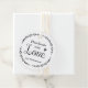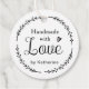 Handgefertigt mit Liebe-Tags für Kunsthandwerk, Heimwerker und Produkte, die Ihren personalisierten Markennamen mit rustikalen schwarz-weiß Kranz- und Handschrift-Design kennzeichnen.