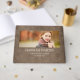 Rustikal braun gealterte Leinen und weißes personalisiertes Abschluss Gästebuch mit Foto, Schulname und Abschluss Jahr auf der Titelseite. Kontaktieren Sie uns für Hilfe bei der Anpassung und der Anpassung der Produkte.