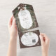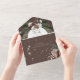 MIT ODER OHNE QR-CODE ZUM AUSSCHLIESSEN. Dieses Design ist mit einem rustikalen grünen Kiefer und einem pineconfarbenen Bouquet auf einem weichen Kakaoboden mit weißen Blume ausgestattet. Es wird durch ein weißes, glänzendes Overlay hervorgehoben, um den Zauber der schönen Winterferien zu veranschaulichen. Ideal für eine Weihnachts- oder Winterhochzeit. Personalisierte All-In-One-Einladungen sind eine einzigartige Kombination aus einer schön gedruckten, maßgeschneiderten Einladung und einer leicht zu abreißenden perforierten UAWG-Postkarte. Und sie sind so einfach zu bedienen! Man falte einfach, dann Siegel die Rückklappe mit den drei beiliegenden Klarkleben, und Post. Und wenn Ihre Gäste Ihre persönliche Einladung erhalten, reißen sie einfach die perforierte RSVP Karte ab und lassen sie in der Mail an Sie zurück!