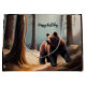 Aquarellbär, der vorne aus dem Wald läuft. Eine rustikale Kabine auf der Rückseite. Beide Seiten können personalisiert sein. Ideal für alle Tierliebhaber.
