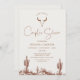 Rustikale Braun Western Dusche Bridal Einladung Dieser Western Themenpaare Dusche verfügt über einen Stier Schädel, braun gezeichnet Western Wüstenillustrierung und eine moderne Kalligraphie Titel. Ideal für Paare, die eine Hochzeit im Land oder Western verbringen möchten.