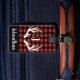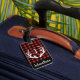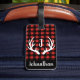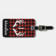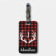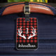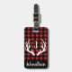 Rustikaler Büffel-Karo kariert in Rot und Schwarz mit einem weißen Hirschgeweih-Geweih-Gepäckanhänger Silhouette mit personalisiertem Namen im Skript.