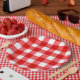 Fügen Sie einen rustikalen rot-weiß gestrichenen einfachen Büffel-Karo-Akzent, um Ihr Party mit diesen Papier-Tellern zu koordinieren. Entworfen von © Tim coffey.