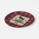 Ein Hintergrund der karierten Kontraste des roten Büffels gegen eine Packpapier-Blickplatte. Die Platte hält Ihre eigenen Wege der Sondermeldung und eines Elches zwischen zwei Kiefern. Gekreuzte Äxte machen ein kundenspezifisches Logo an der Unterseite der Platte. Groß für ein rustikales, ein Western, northwoods oder themed ein Party des Holzfällers für einen Erwachsen- oder Kindgeburtstag, ein Junggeselle-Party, ein Verlobungs-Party, eine Braut- oder des Paares Dusche oder sogar eine lässige rustikale Hochzeit. Verfügbar mit zusammenpassenden Produkten.
