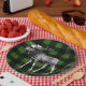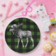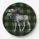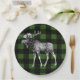Rustikaler und mutiger Hintergrundpapier-Teller des Karos des grünen und schwarzen Büffels karierter. Er kennzeichnen auch eine Schwarzweiss-Elchillustration. Dieser Teller ist für Babyduschen groß!