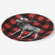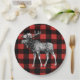 Rustikaler und mutiger Hintergrundpapier-Teller des Karos des roten und schwarzen Büffels karierter. Er kennzeichnen auch eine Schwarzweiss-Elchillustration. Dieser Teller ist für Babyduschen groß!