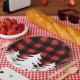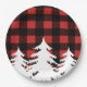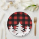 Rustikaler und mutiger Hintergrundpapier-Teller des Karos des roten und schwarzen Büffels karierter. Er kennzeichnen auch eine WeißBaum- des WaldesSilhouette. Dieser Teller ist für Babyduschen groß!